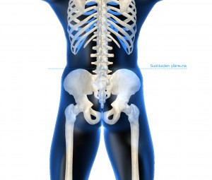 Voit pyytää myös kaverisi mittaamaan lantiosi virheasennon. Seiso suorassa jalat yhdessä, jolloin kaverisi asettuu selkäpuolelle tunnistelemaan lantiotasi. Kun kaverisi on löytänyt sormillaan lantioluut ja saanut asetettua ne suoliluiden yläreunalle kannattaa hänen laskea silmänsä lantion tasolle, jolloin virheasento on helpompi havaita.